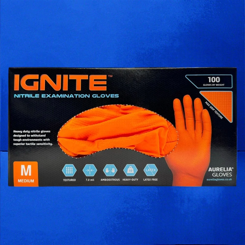 Ignite Heavy Duty Orange Nitrile Gloves
